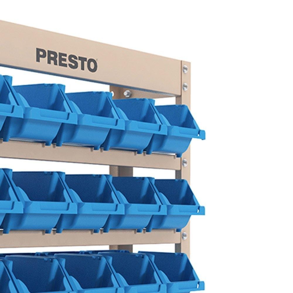 - Kit com estantes em aço para encaixar gavetas plásticas, possibilitando diversos tipos de armazenagem - Ideal para organizar parafusos e outras peças pequenas, pois facilita o acesso rápido a itens necessários para realizar o trabalho de maneira mais ágil e organizada - Estrutura em aço e 25 gavetas empilháveis n 3 azuis inclusas - Vantagens: :: Produto vendido desmontado :: Composto por gavetas que encaixam e empilham :: Fácil de transportar em veículo :: Pode ser usado como expositor :: Gavetas práticas: ocupam 70% menos espaço que as convencionais :: Gavetas plásticas podem ser removidas da estrutura :: Maior resistência e durabilidade: estrutura em aço com tratamento químico antiferruginoso fosfatizante e pintura eletrostática a pó - Especificações Técnicas: :: Largura: 600mm :: Altura: 660mm :: Profundidade: 185mm :: Carga máxima: 65kg distribuídos :: Espessura da estrutura: 0,90mm - Dimensões da gaveta: :: Largura: 104mm :: Altura: 80mm :: Profundidade: 176mm :: Carga maxima: 2Kg por gaveta - Garantia: 1 Ano