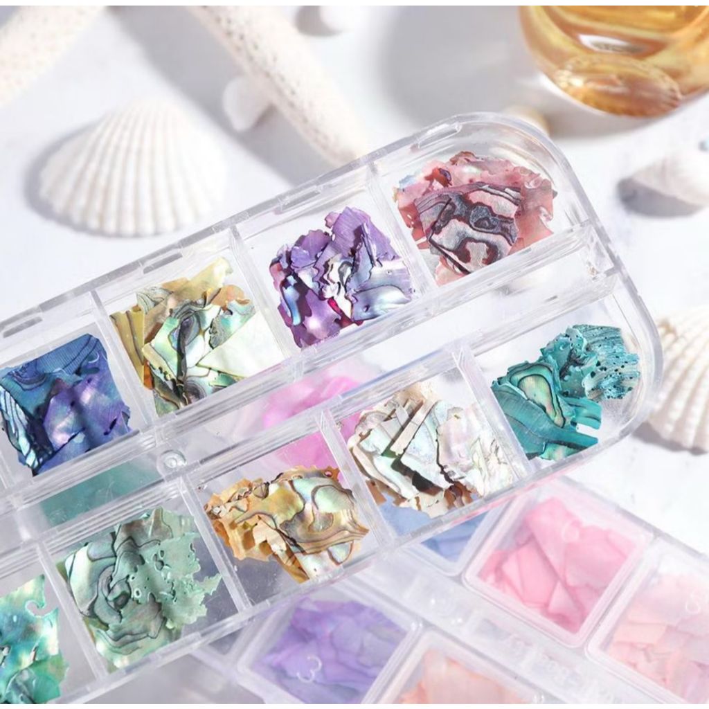 Kit com 12 Enfeites para unha no estilo Madré Pérola Furta cor. Modelos Perfeitos para deixar suas unhas no mais ato nível! Ideal para técnica de Encapsulamento! Um estilo único para enfeitar suas unhas.