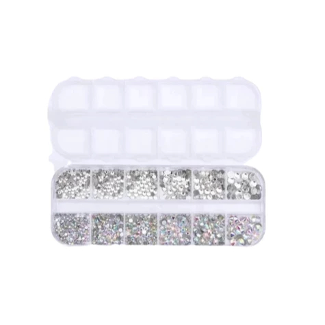 ** Neste Kit você recebe 1 caixa de Strass + 1 Cola para Cílios ** Escolha a cola que deseja receber. Embalagem Verde - Cola Transparente Embalagem Azul - Cola Branca __________________________________________________________________________________________________ Descrição Strass: Mini Caixa organizadora com 12 compartimentos com strass na cor Prata. • Tamanhos variados. • Base reta, não possui cola. • Pode ser utilizado para decoração de unhas ou para maquiagem. Especificações: Broca de 2 mm * 4 grades, Broca de 3 mm * 4 grades, Broca de 4 mm * 2 grades, Broca de 5 mm * 2 grades. __________________________________________________________________________________________________ Descrição Cola: Cola Transparente Cola Para Cílios EYE Eyelash Adhesive, possui uma excelente fixação, secagem rápida. Acabamento transparente e é a prova d'água. Pode ser usada em qualquer tipo de fixação. Peso: 7g unidade. Modo de Usar: - Aplique a cola diretamente na base dos cílios e espere alguns segundos antes de colar. A Cola Para Cílios Branca - EYE Eyelash Adhesive, possui uma excelente fixação, secagem rápida. Cola Branca, mas após a secagem fica transparente. Pode ser usada em qualquer tipo de fixação. Peso: 7g unidade. Modo de Usar: - Aplique a cola diretamente na base dos cílios e espere alguns segundos antes de colar. __________________________________________________________________________________________________ *Imagem meramente ilustrativa **As cores do produto podem variar conforme a configuração do seu monitor/celular.