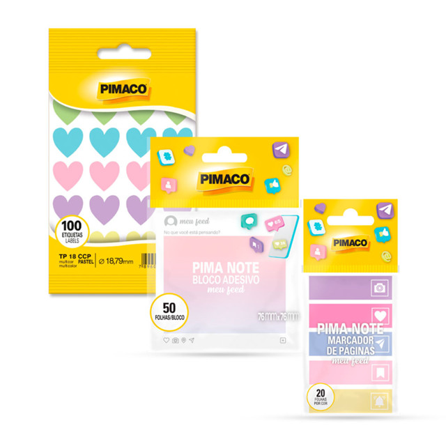 Kit Etiqueta TP coração + Bloco adesivo + marca páginas Pimaco