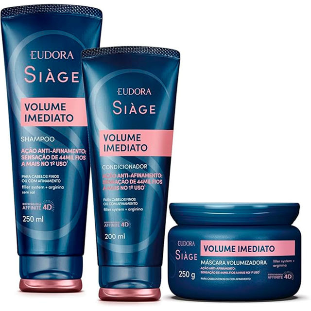 Kit Eudora Siage Shampoo 250ml + Condicionador 200ml + Máscara 250g Volume Imediato Ação Anti-Afinamento
