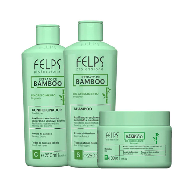 Kit Extrato de Bamboo Shampoo, Condicionador e Máscara - Felps