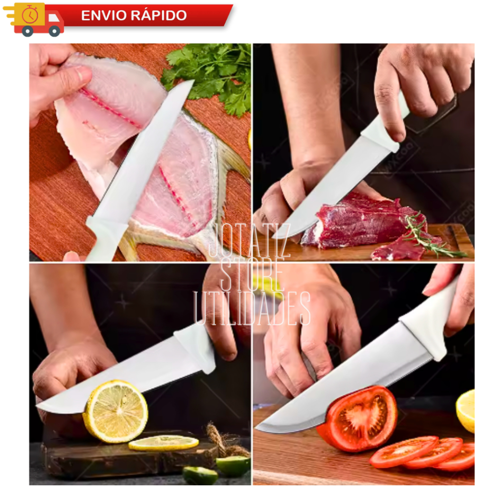 Kit Faca De Desossar Profissional 6 Pol Branca Amarela Vermelha Reta Premium Para Desossa Açougue Frigorífico Indústria
