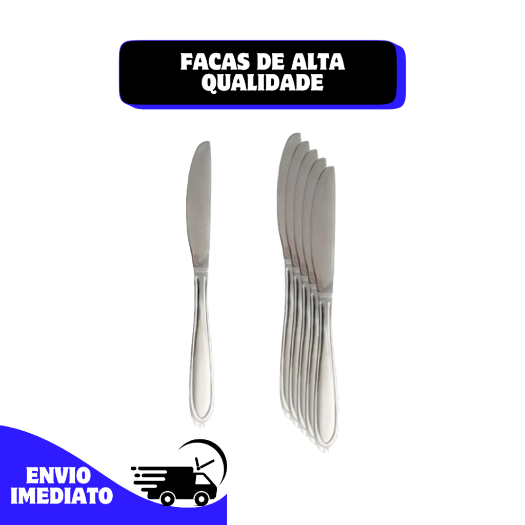 Kit com facas de alta qualidade escolha entre 6, 12 ,18, 24 e 36 unidades Tamanho 21cm toda em aço inox qualquer dúvida chamar no chat estamos prontos para te atender Envio imediato, entrega rápida