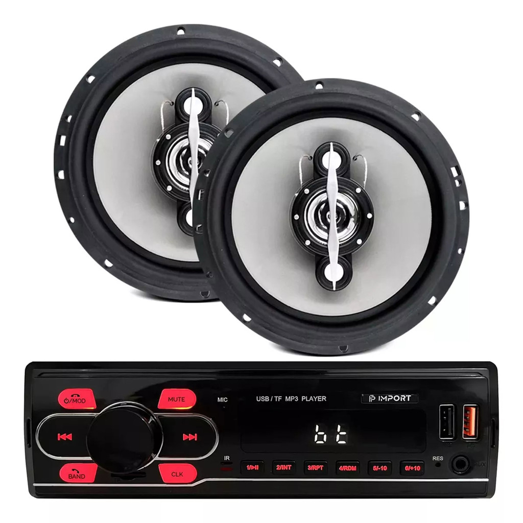 Kit Falante Som Automotivo Ls6 6 Pol 140w + Rádio Fp100 Bt