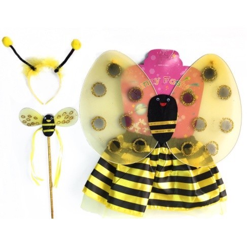 Kit Fantasia Abelha e Joaninha Infantil Com Asa Tiara Varinha