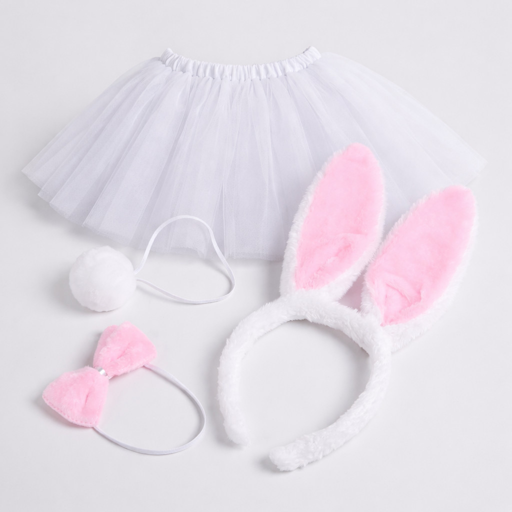Kit Fantasia Coelhinha Páscoa Carnaval 4 Itens Tiara Rabo Saia Tule Gravata