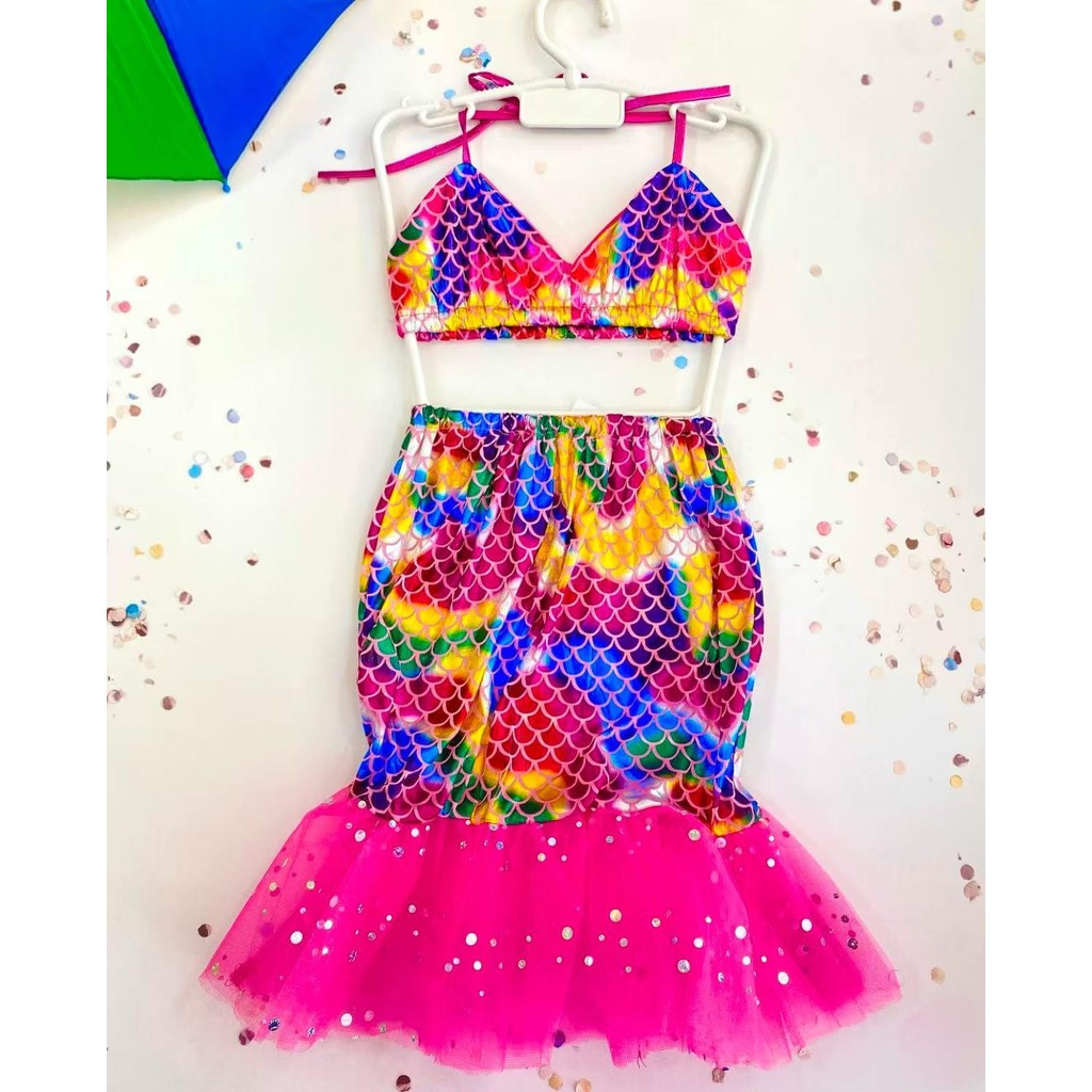 Kit Fantasia De Festa Infantil De Unicornio / Sereia / Frozen Saia + Tiara + Trança