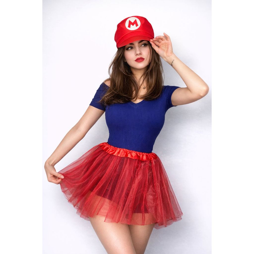 KIT Fantasia Super Mario + Luigi 4 ITENS /Quepe Mario Bros + Quepe Luigi + Saia Vermelha + Saia Verde de tule / Carnaval