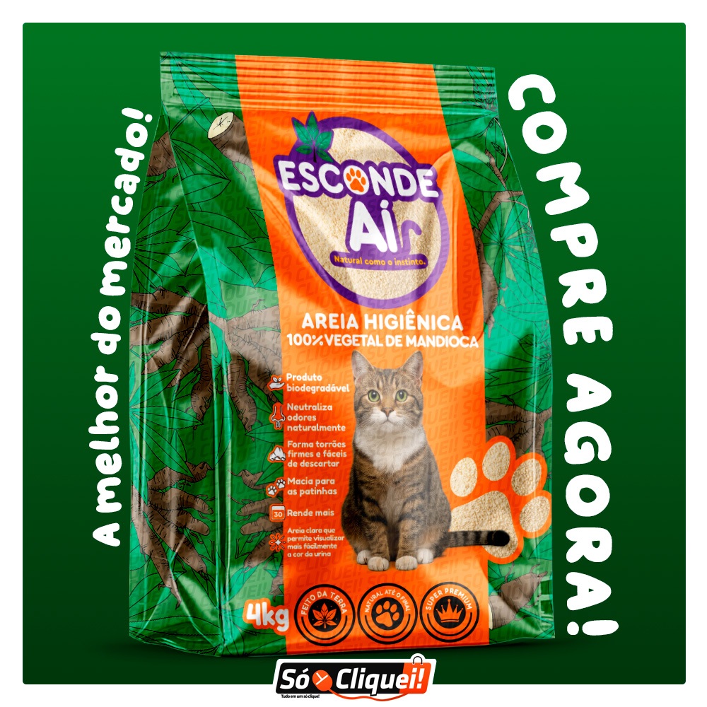 | Kit Fardo 1 a 5 Pacotes de Areia de Gato Esconde Aí 100% Mandioca B... este produto | R$ 35,99 | 34% | 4.8/5 | — |