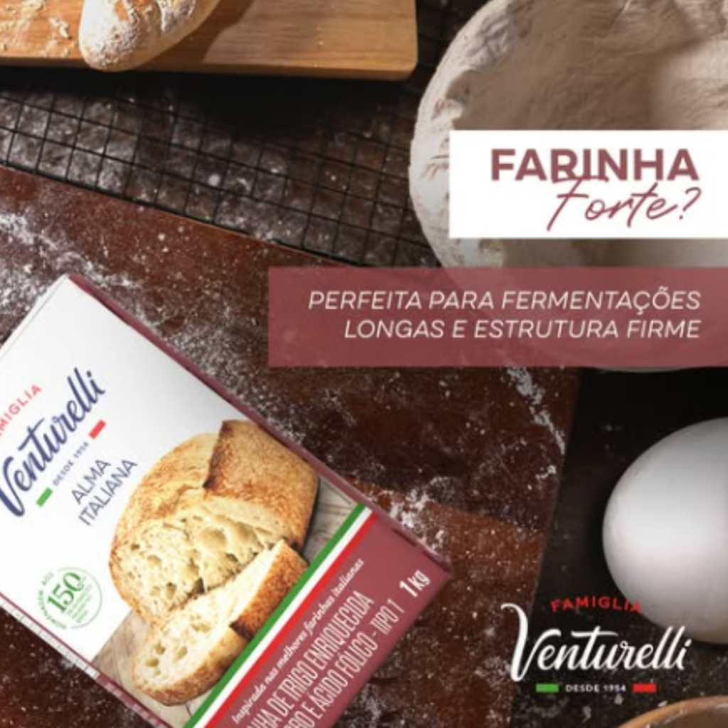 Kit com 2, 4 ou 6 unidades. A Farinha De Trigo Alma Italiana Venturelli 1kg é uma edição especial, com quantidades limitadas, que garante qualidade superior em cada pacote. Selecionamos trigos de excelente qualidade, atendendo rigorosamente às especificações das farinhas italianas. Com um método de extração especial, esta farinha apresenta alta proteína e força W320, permitindo uma hidratação de até 82% em receitas específicas. Ideal para a preparação de pães italianos, ciabattas, foccacias e pizzas napolitanas, ela é um ingrediente essencial para os amantes da culinária. A marca Famiglia Venturelli é sinônimo de tradição e excelência. Este produto é novo, não rotacionável e possui validade, garantindo frescor e qualidade. Aproveite a oportunidade de elevar suas receitas com esta farinha de tipo 1, que não contém glúten, lactose ou açúcar, e não é vegana nem integral.