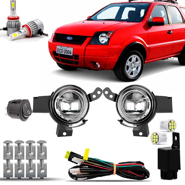 Kit Farol Auxiliar Neblina Milha Farolete Completo Ecosport 2003 2004 2005 2006 2007 08 09 10 11 12 2013 + Super Led 6K