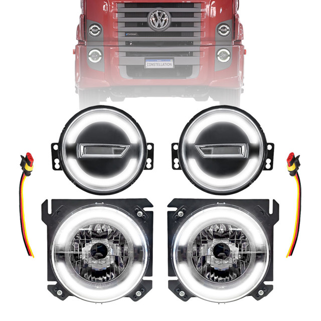 Kit Farol drl Caminhão VW Constellation + Pisca Led Angel Eyes 2006 A 2022 24.250 19.370 Com Chicote