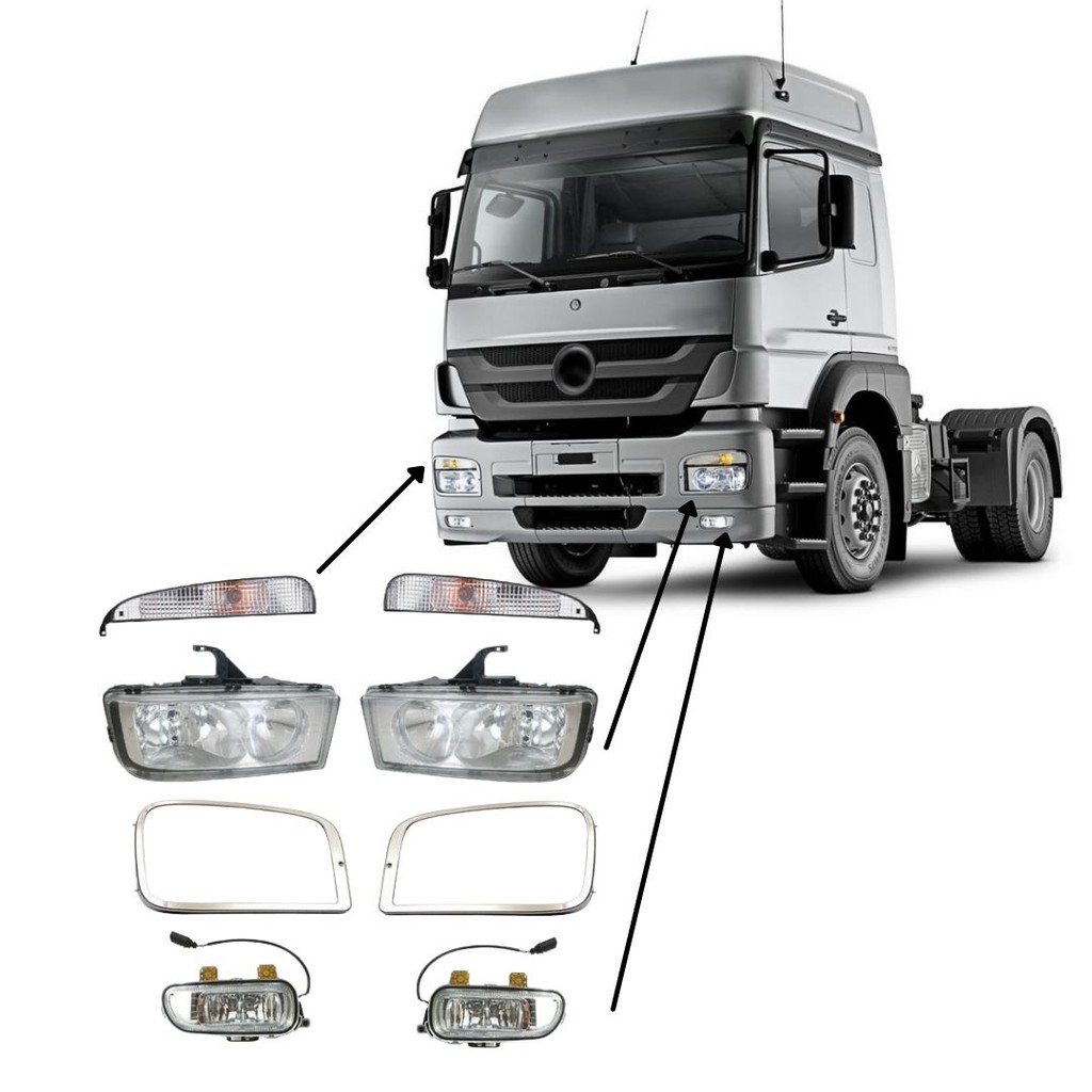 Kit Farol Principal Auxiliar Moldura Compativel MB Axor