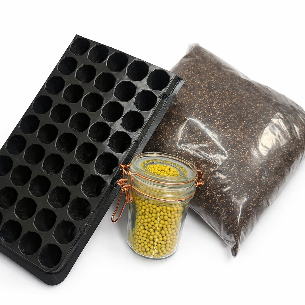 Kit Fazer Mudas com Bandeja 50 Células + Terra Substrato + Semente de Alface para Horta Doméstica