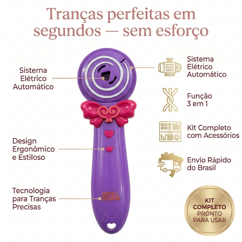 Transforme o momento de brincar em uma experiência criativa e divertida. Com a Máquina de Fazer Tranças Infantil, as crianças conseguem criar tranças lindas e estilosas de forma rápida e fácil. Basta separar as mechas de cabelo, posicionar na máquina e deixar o sistema automático fazer o trabalho. Em poucos segundos, surgem tranças perfeitas e cheias de estilo. Além de divertido, o brinquedo estimula a criatividade, a imaginação e permite criar penteados únicos para brincar com amigas, festas ou momentos especiais. ✔ Sistema Automático de Tranças: Crie tranças de forma rápida e prática. ✔ Kit Completo de Acessórios: Inclui miçangas coloridas, fios decorativos e acessórios para personalizar os penteados. ✔ Fácil de Usar: Ideal para crianças brincarem com segurança e autonomia. ✔ Design Ergonômico e Confortável: Leve e fácil de segurar. ✔ Diversão Criativa: Estimula criatividade, coordenação e imaginação. 📦 O Que Vem no Kit: • 1 Máquina de fazer tranças. • Miçangas coloridas. • Fios decorativos. • Pente. • Acessórios para penteado. 👧 Indicado Para: • Crianças a partir de 5 anos. • Brincadeiras criativas. • Festas do pijama. • Momentos de diversão com amigas. 🚚 Envio Rápido: Produto enviado com embalagem segura para chegar em perfeito estado.