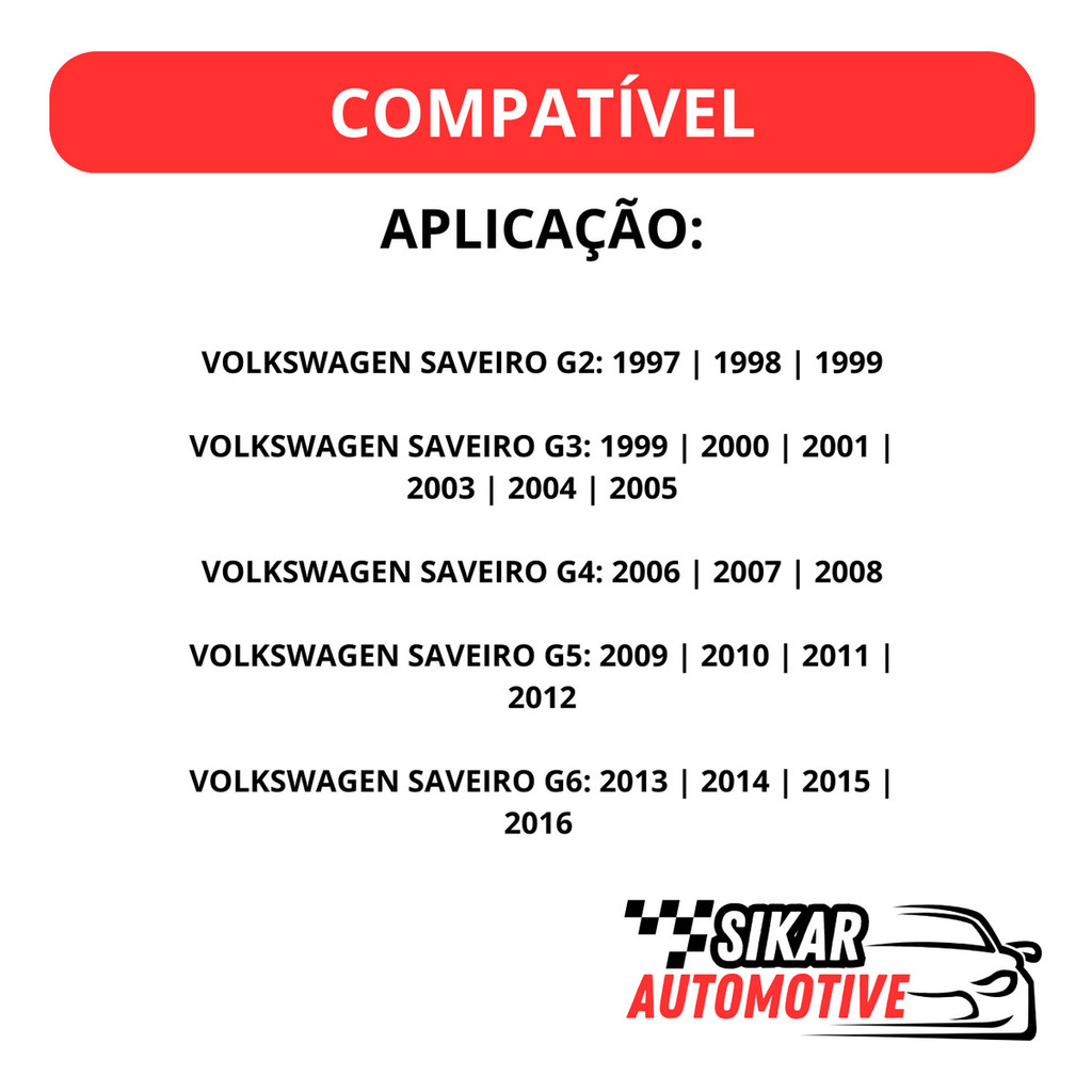 REFERENTE A FECHADURA MAIS BATENTE INTERNA DA TAMPA TRASEIRA PARA VW SAVEIRO G2/G3/G4/G5/G6 CÓDIGO ORIGINAL: 376.827.245 L/E CÓDIGO ORIGINAL: 376.827.246 L/D ITENS INCLUSOS: 01 Fechadura Interna da Tampa Traseira da Caçamba Lado Esquerdo motorista 01 Fechadura Interna da Tampa Traseira da Caçamba Lado direito passageiro APLICAÇÃO: VOLKSWAGEN SAVEIRO G2: 1997 | 1998 | 1999 VOLKSWAGEN SAVEIRO G3: 1999 | 2000 | 2001 | 2003 | 2004 | 2005 VOLKSWAGEN SAVEIRO G4: 2006 | 2007 | 2008 VOLKSWAGEN SAVEIRO G5: 2009 | 2010 | 2011 | 2012 VOLKSWAGEN SAVEIRO G6: 2013 | 2014 | 2015 | 2016 .... RECOMENDAÇÃO DE INSTALAÇÃO COM UM PROFISSIONAL