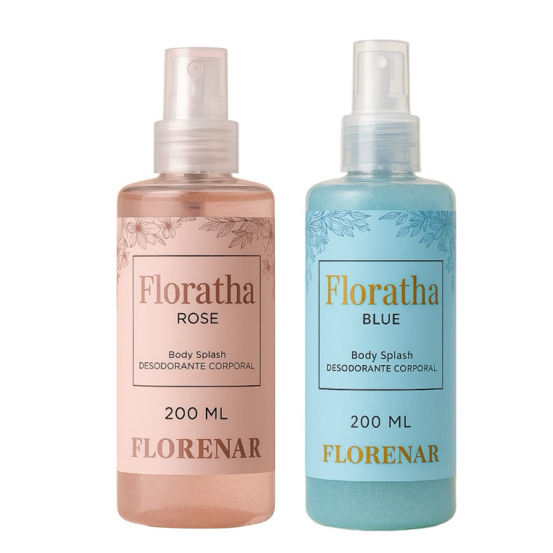 Kit Feminino 2 Body Splash 1 Florata Rose com gliter 200Ml + 1 Florata Blue com gliter 200Ml