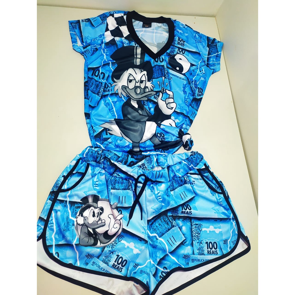 Kit Feminino Conjunto Qb34 Notas De 100 Reais Shorts e Baby Look