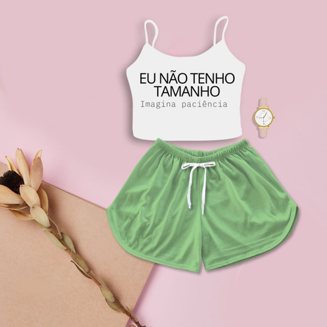 Kit Feminino Cropped Eu Não Tenho Tamanho Shorts Cor Sortida Aleatória