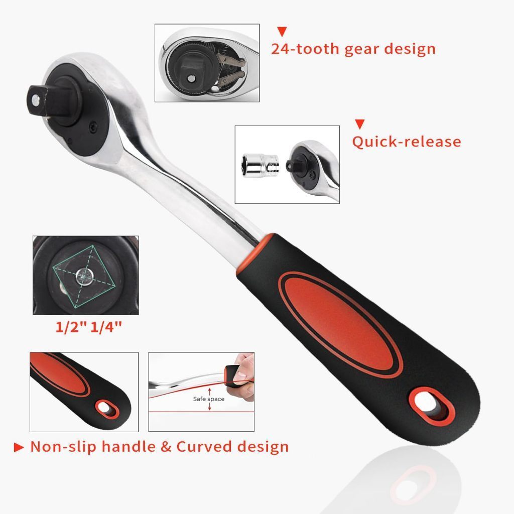 🔧 CONJUNTO DE SOQUETES DE IMPACTO COMPLETO – 1/4" E 1/2" 🔩 Aço Cr-v de alta resistência | Durável | Prático | Seguro ✅ MATERIAL DURÁVEL E DE ALTA QUALIDADEConfeccionado em aço cromo vanádio (Cr-v) premium, fabricado por processo de 6 etapas: forjamento, endurecimento, acabamento e carimbo.Suporta torques extremos, com marcações dimensionais em relevo oversized – fáceis de ler e não desgastam.Superfície polida, fácil de limpar e alta resistência à corrosão. 🔧 AMPLA APLICAÇÃO E KIT COMPLETO Conjunto de soquetes 1/2" e 1/4" com 24 peças de catraca. Tamanhos variados: de 5/32" a 9/16" e 4 a 14 mm (comprido e raso). Inclui soquetes Torx E, brocas Torx, Philips, Hex, Pz, Ph, Tt. Ideal para: -Reparos automotivos (motores, pneus, velas de ignição) -Reparos elétricos e manutenções profissionais -Uso em casa ou no trabalho 🛡️ SEGURO E CONFORTÁVEL DE USAR -Alça de catraca com design antiderrapante para maior conforto e segurança. -Mecanismo de catraca suave para operação eficiente e precisa. -Botão de liberação rápida – troque soquetes em segundos, economizando tempo e esforço. 📦 MALA DE FERRAMENTAS RESISTENTE E PRÁTICA Caixa em material de polietileno de alta densidade: resistente, leve e durável. Fechamento seguro com alavanca, fácil transporte e armazenamento organizado 【Compromisso da Loja】 ✅ Garantia de qualidade ✅ Entrega rápida ✅ Suporte profissional de atendimento