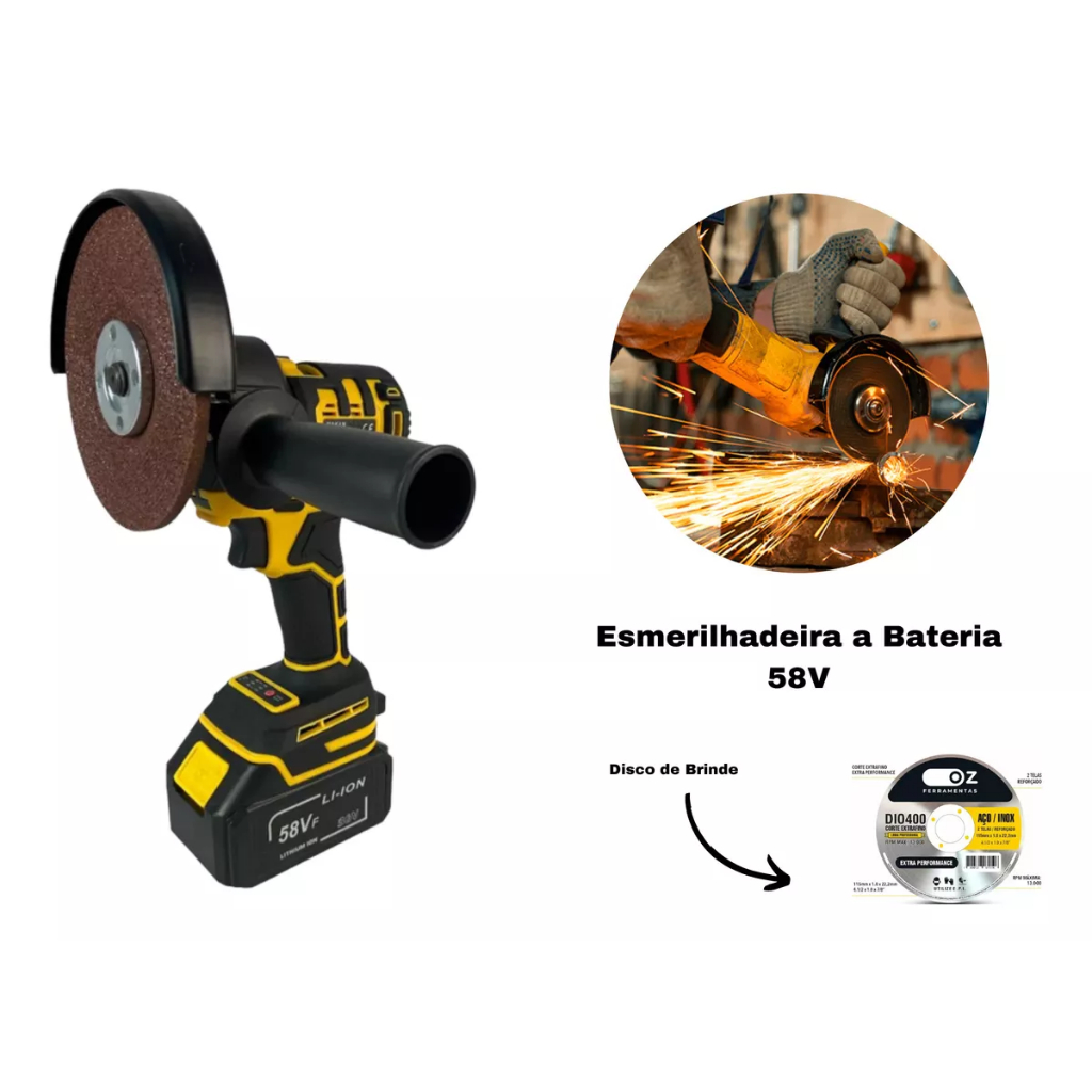 KIT 5 EM 1 ITENS INCLUSOS: 1 - Maleta 1 - Encaixe Parafusadeira 1 - Encaixe Furadeira ( acompanha brocas 6 e 8mm ) 1 - Encaixe Esmerilhadeira (Suporte lateral, protetor de fagulhas e chave ) 1 - Encaixe Chave de Impacto 1 - Encaixe eletrosserra 2 - Baterias Lítio 4,5Ah 48V 1 - Carregador 1 - Disco Esmerilhadeira Jogo de ferramentas a bateria 5 em 1 com motor BRUSHLESS, acompanha um encaixe para Parafusadeira, Furadeira Industrial, Esmerilhadeira Chave de Impacto, Mini Moto eletrosserra. Vai com duas baterias de 48V intercambiáveis com 4,5Ah e carregador, todos 48V. economize adquirindo e este kit pagando menos e tendo tudo que você precisa. É ideal para hobbysta e profissional tenha a facilidade de várias ferramentas compartilhando a mesma bateria. Atenção! Este anúncio se refere a um produto com tecnologia Brushless, ferramentas a bateria com motor sem escova de carvão. mais torque mais potência e maior durabilidade **Porque Motor Brushless é melhor** Em relação aos motores comuns “com escovas”, eles apresentam maior confiabilidade, maior eficiência (maior potência por reduzir o atrito), ruído reduzido, vida útil maior, eliminação de interferência eletromagnética e eliminação de ionização do comutador — necessária para ligar um motor com escovas —, além disso são livre de manutenção no que tange as escovas. ESPECIFICAÇÕES: Encaixe 1/ PARAFUSADEIRA : Motor Brushless Mandril universal 3/8’’ RPM – opção 2 = 0 a 600 opção 1 = 0 a 1850 Torque regulavel , max 21Nm Reversível Controle de velocidade no gatilho 48V Com impacto para perfurar paredes. Led auxiliar Encaixe 2/ furadeira : Motor Brushless RPM – 1380 Impacto por minuto - 4.000 Encaixe sds plus Reversível Controle de velocidade no gatilho Acompanha brocas 6 e 8mm 48V Função Vario-Lock (Permite variar a posição de acessórios como talhadeira) Encaixe 3/ESMERILHADEIRA: Motor Brushless Rocas M14 RPM – 11000 Disco máximo Diâmetro externo 115mm Medida do furo 22mm 48V Trava de de gatilho. (Permite manter o gatilho pressionado) Encaixe 4/ Chave de impacto : Motor Brushless encaixe de 1/2 48V soquete 21mm/17mm/9mm Trava de de gatilho. (Permite manter o gatilho pressionado) Encaixe 5/ Eletrosserra : Motor Brushless acompanha corrente 48V Trava de de gatilho. (Permite manter o gatilho pressionado)