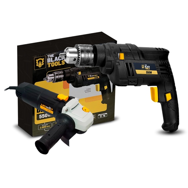 Kit Ferramentas Furadeira Com Impacto + Esmerilhadeira Lixadeira 4.1/2 The Black Tools