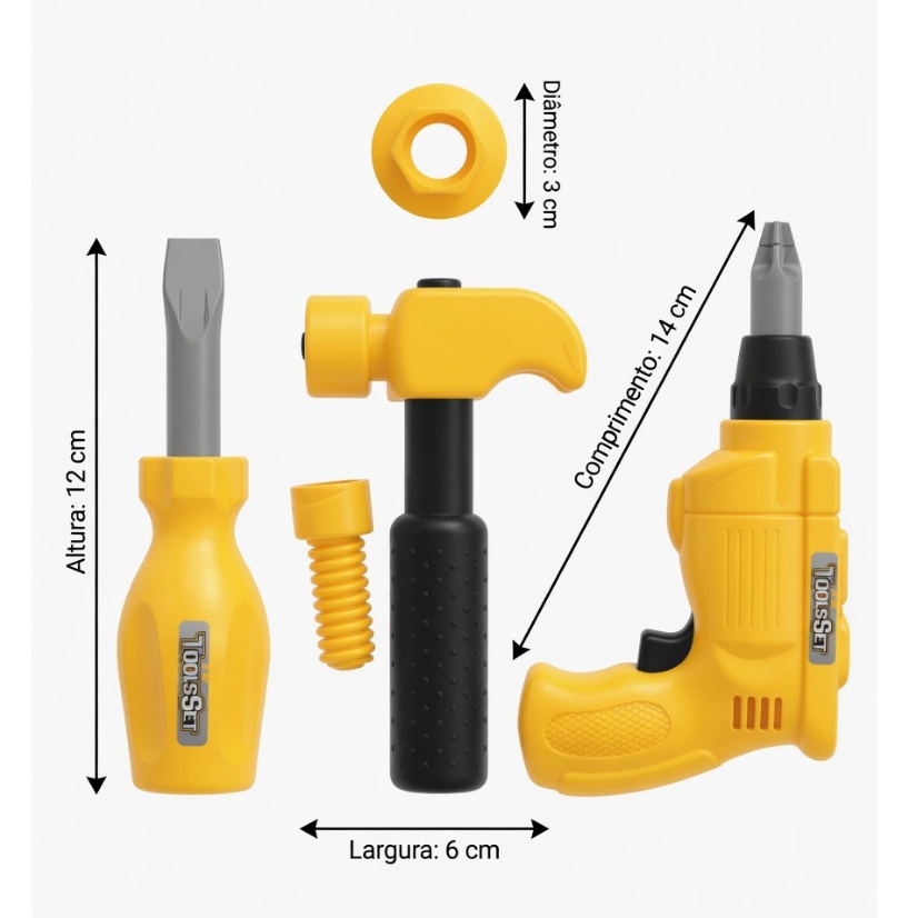 Ferramenta Infantil Brinquedo Kids Plástico Super Kit com peças martelo e outras ferramentas ESCOLHER O MODELO NAS VARIAÇÕES Mantenha seus filhos ocupado com a imaginação fértil, com esse brinquedo ferramentas, Ótima opção para aprender e se divertir. *Recomendado para crianças com + de 3 anos por conter peças pequenas Entrega imediata, ENVIO SUPER RAPIDO
