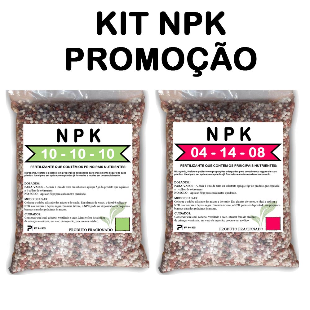 | Kit Fertilizante NPK 10-10-10 e 04-14-08 | Força, floração e alta p... este produto | R$ 39,79 | 19% | 4.8/5 | 5 |