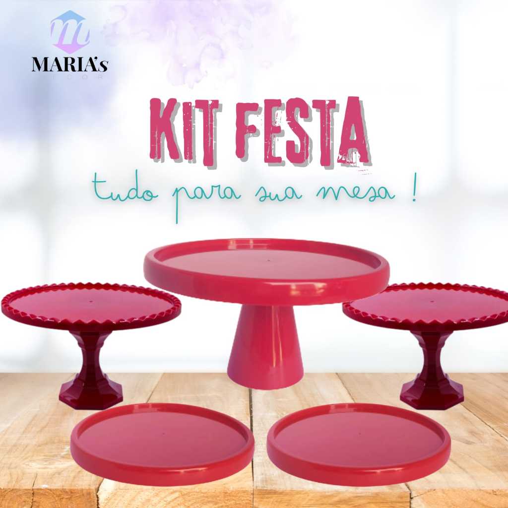 | KIT FESTA 1 BOLEIRA ,2 MEDIA CAKE E 2 BANDEJAS REDONDAS PARA FESTA ... este produto | R$ 51,48 | — | 4.9/5 | 6 |