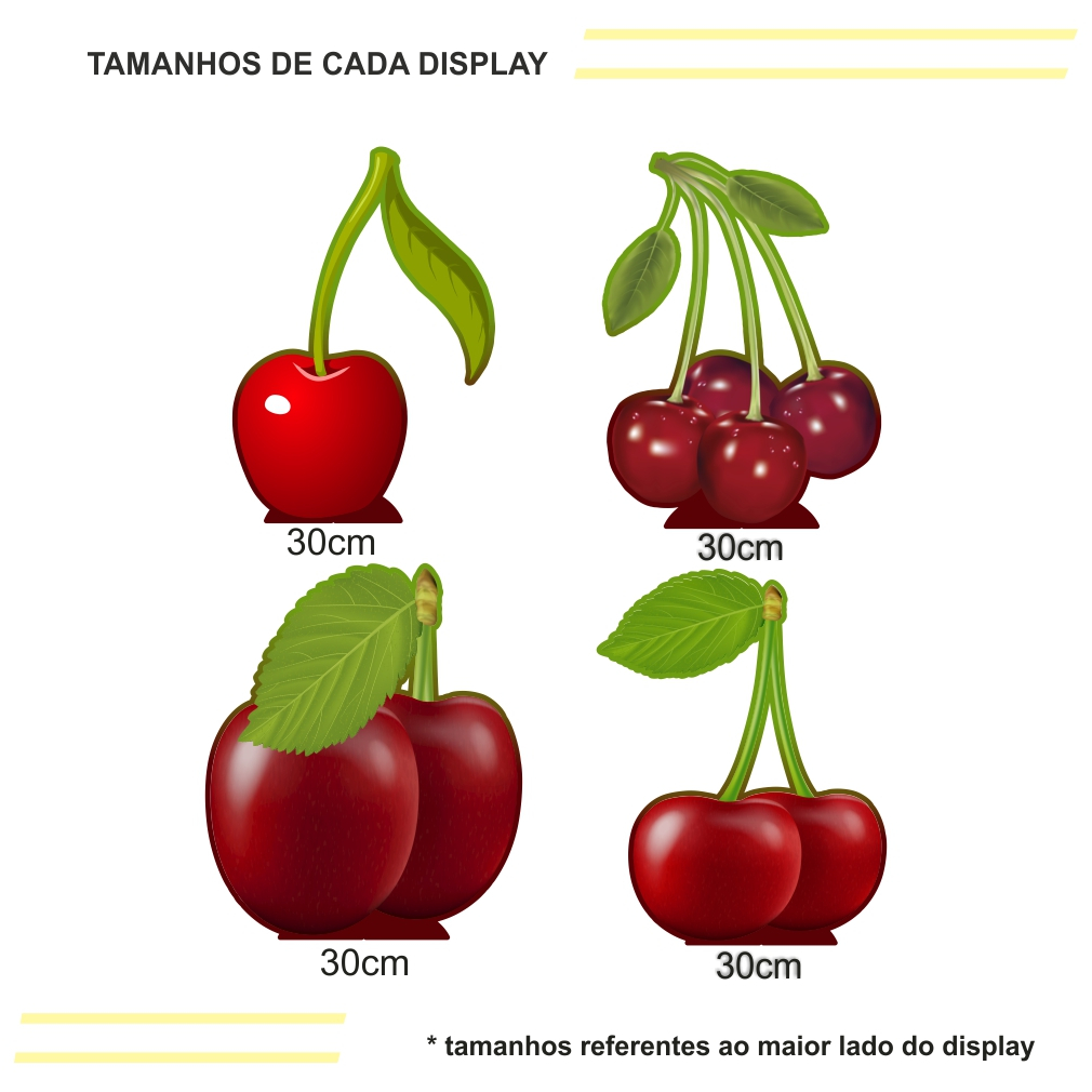 | Kit Festa 4 Display de 30cm Totens para Decoração de Festa Cereja C... este produto | R$ 38,99 | — | 4.9/5 | 9 |