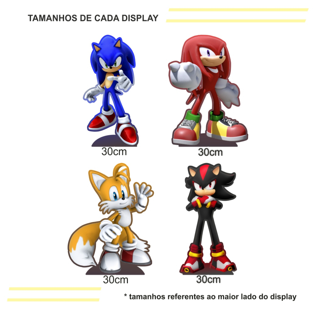 Kit Festa 4 Display de 30cm Totens para Decoração de Festa Sonic e seus Amigos MDF Cortado a Laser