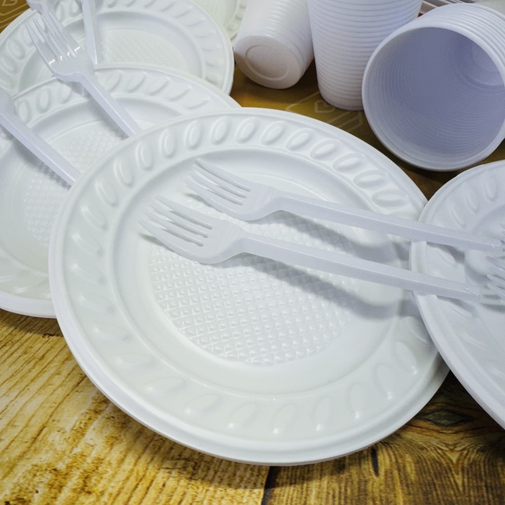 Kit Festa 50~200 PESSOAS ECONOMICO BRANCO GARFO + PRATO + COPO 30 % OFF