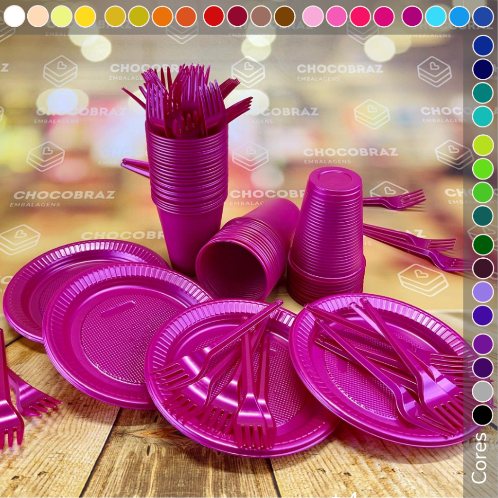 Kit Festa 50 CONVIDADOS 50 Garfinho + 50 Pratinho + 50 Copo Descartaveis PEROLADOS 36 CORES BELLO