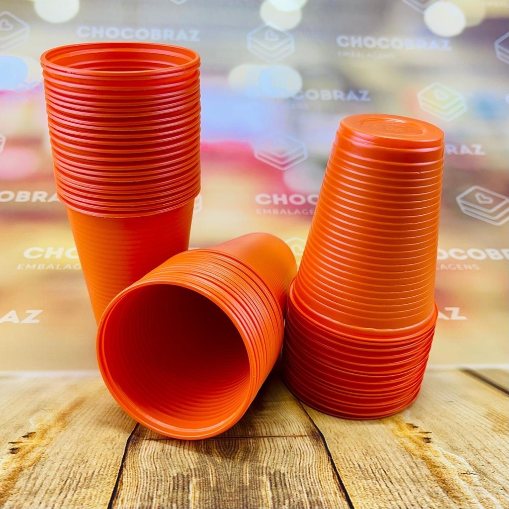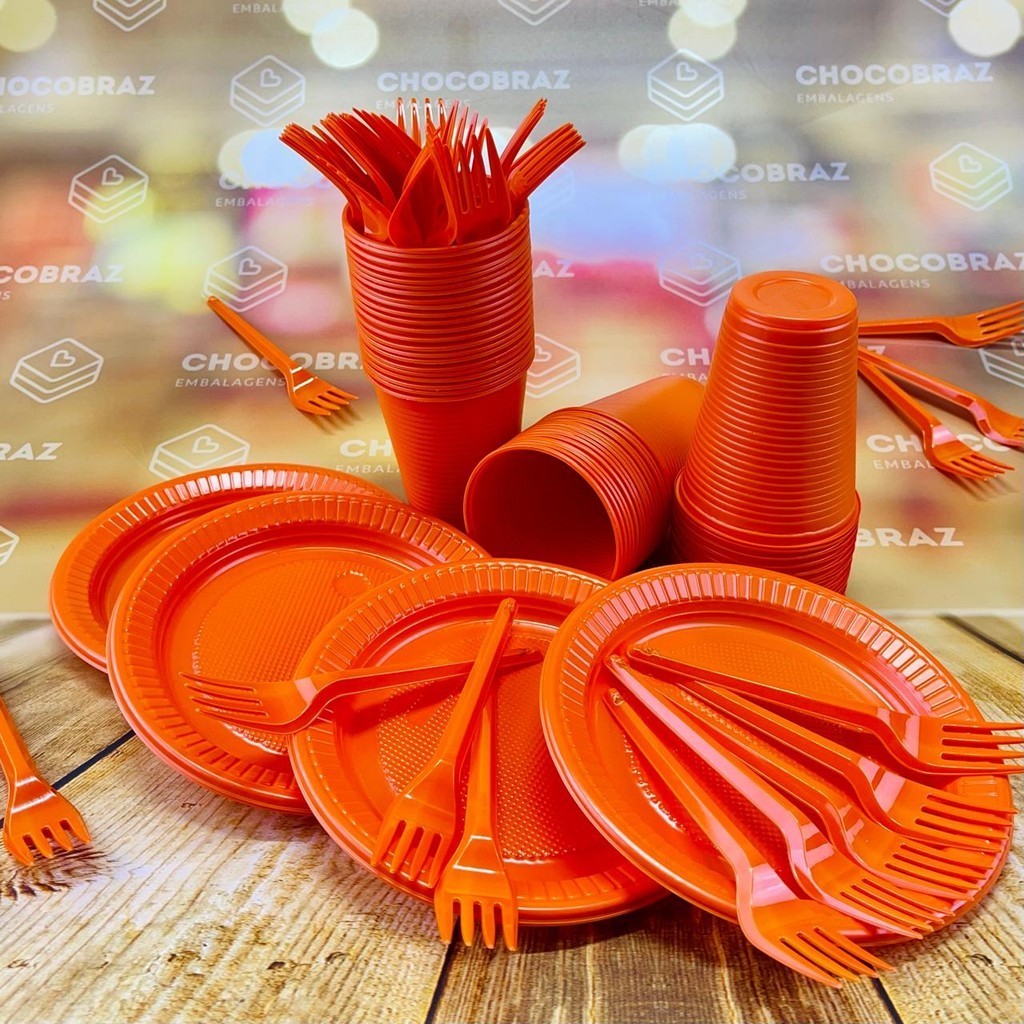 Kit Festa 50 PESSOAS DESCARTAVEIS LARANJA GARFO + PRATO + COPO