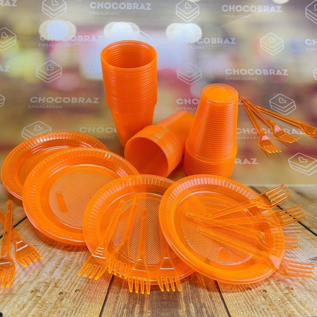 | Kit Festa 50 PESSOAS DESCARTAVEIS LARANJA NEON GARFO + PRATO + COPO este produto | R$ 29,97 | 14% | 5.0/5 | — |