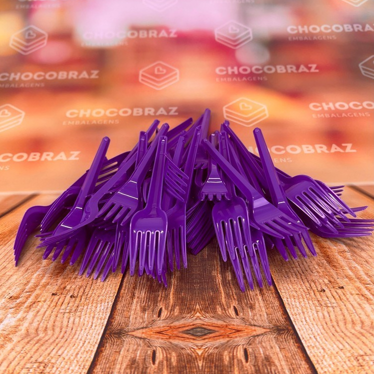 Kit Festa 50 PESSOAS DESCARTAVEIS ROXO GARFO + PRATO + COPO