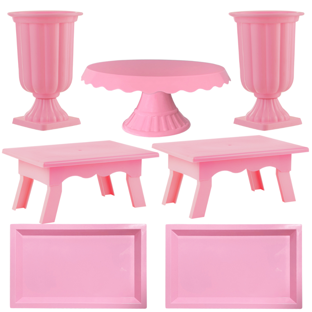 Kit Festa Aniversário com 2 Boleiras, 2 Bandejas 31x19, 2 Vasos e 2 Mesinha