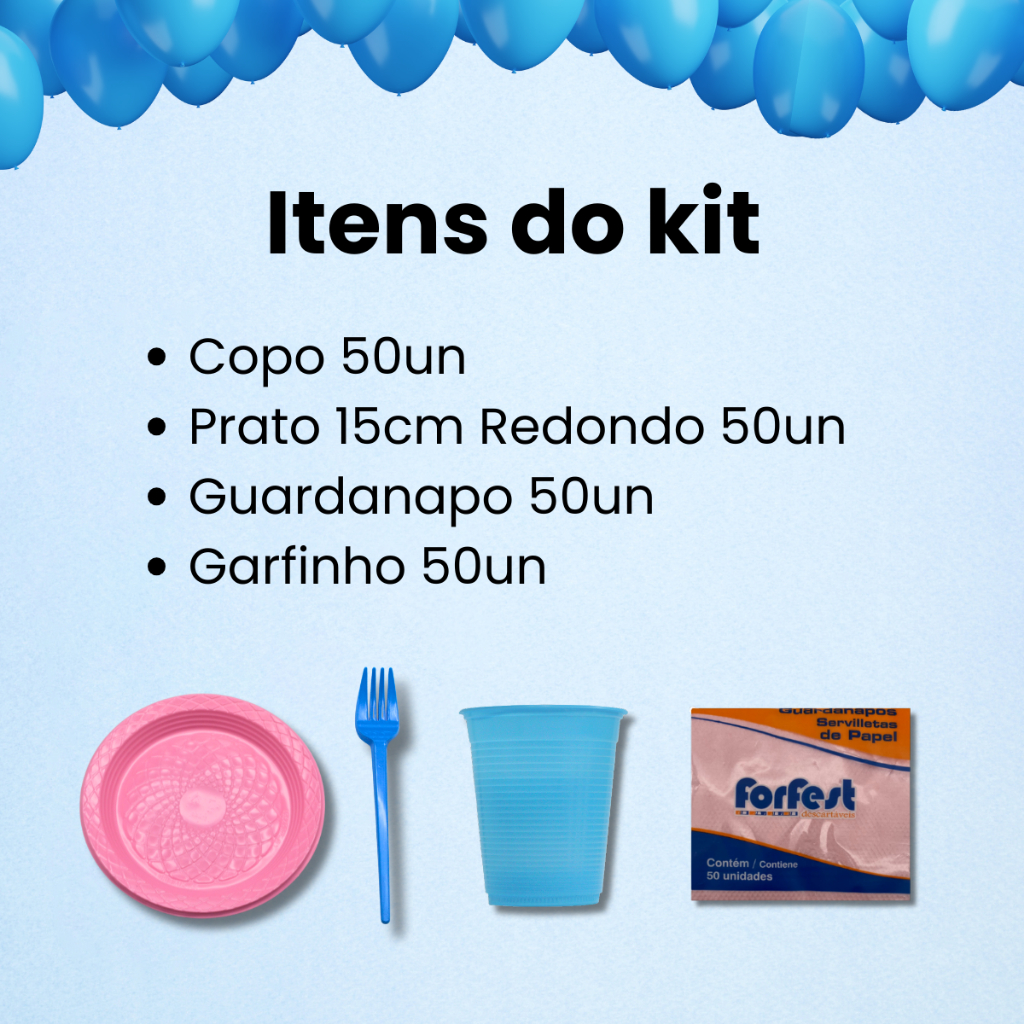Kit Festa Aniversário Descartável 200 Peças: 50 Pratos, 50 Copos, 50 Garfos 50 Guardanapos