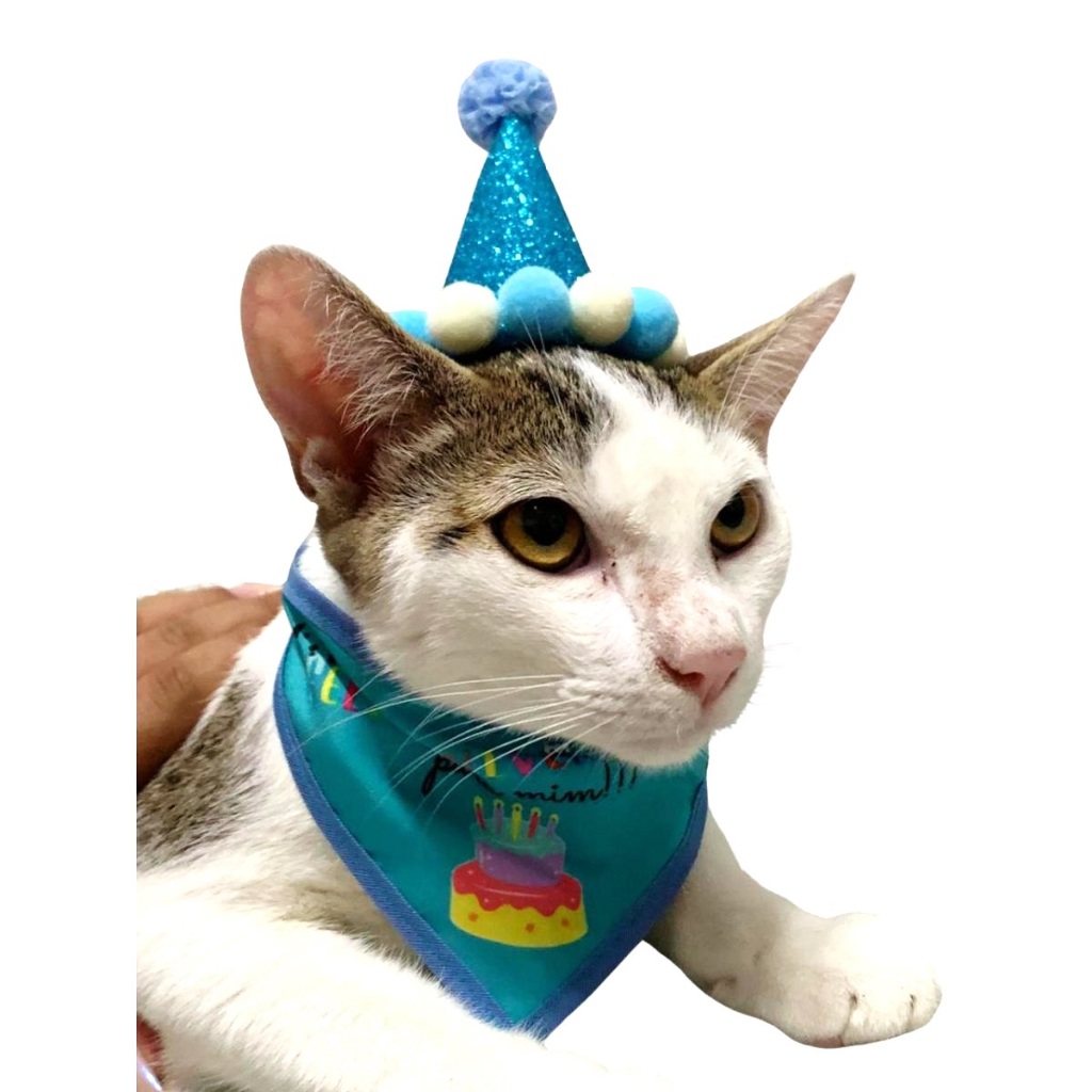 Kit Festa Aniversário Pet Cachorro Gato c/ Chapéu e Bandana + Faixa Parabéns para Fotos - 3 Tamanhos