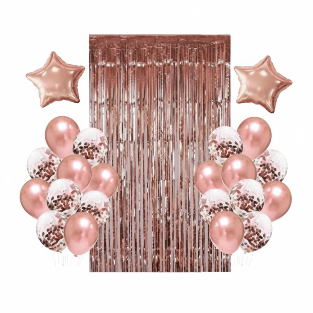 Kit Festa Aniversário Rosê Gold Completo + Balões Escolha Seus Números Decoração Luxo Feliz Aniversário + Cortina