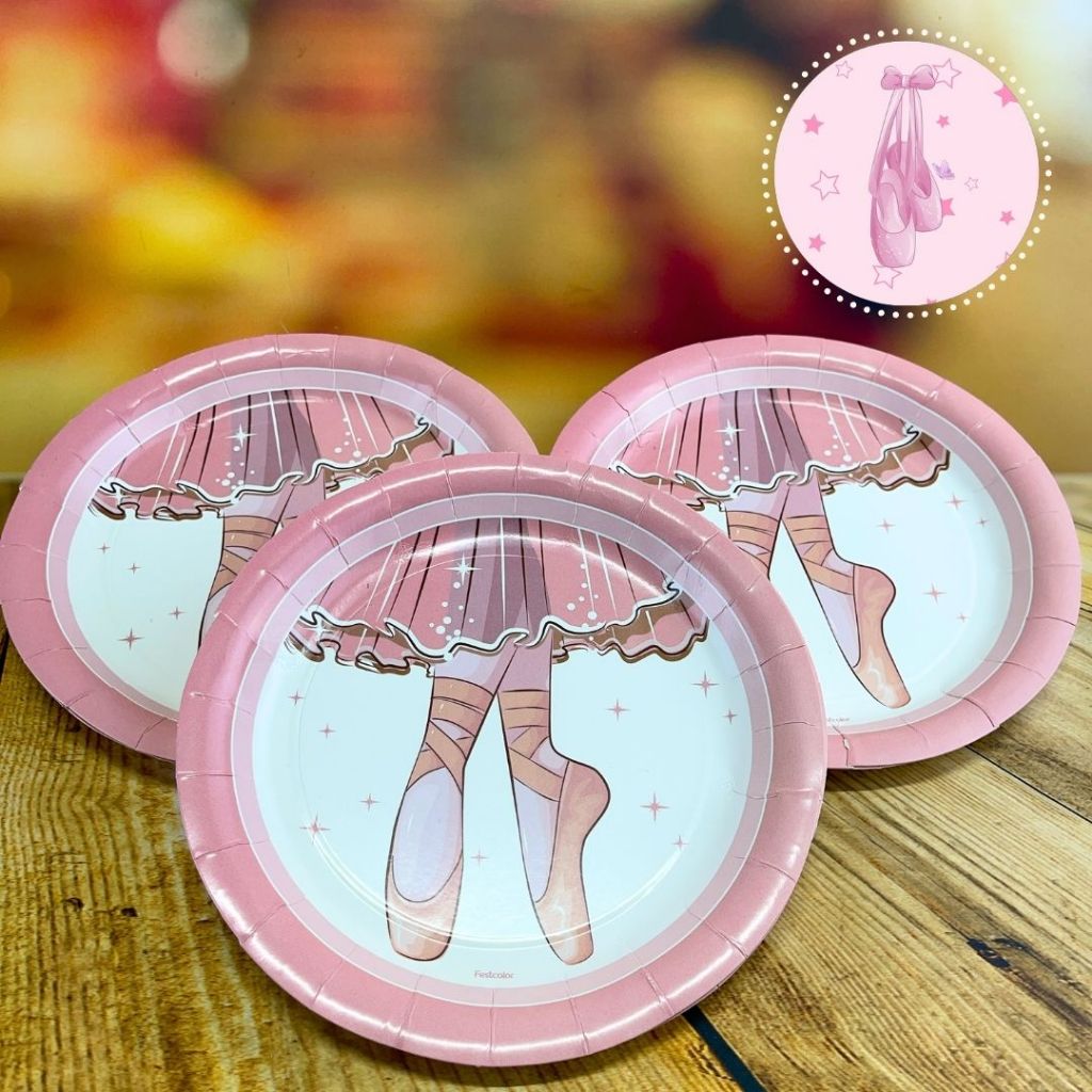 KIT FESTA BAILARINA 8 PRATOS + 8 COPOS DESCARTÁVEL 200 ML PAPEL - FESTCOLOR