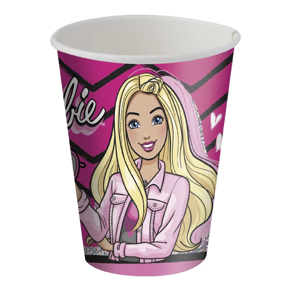 Kit Festa BARBIE 8 Pratos + 8 Copos Descartável 200 Ml Papel - FESTCOLOR