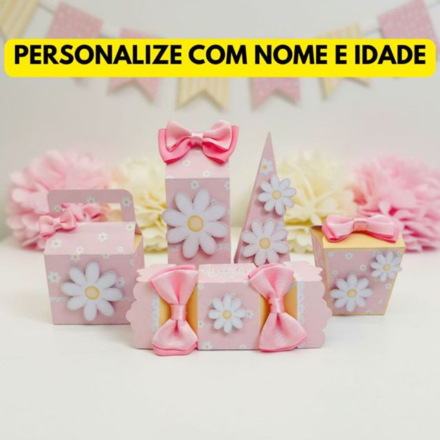 Kit Festa Caixinha personalizada Diversos Temas FLORES MARGARIDA Lembrança Caixa Pegue e Monte