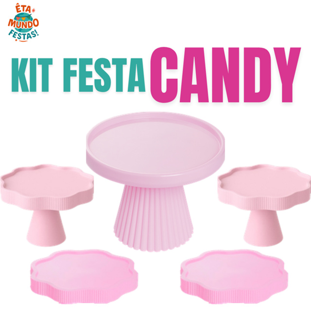 KIT FESTA CANDY 1 BOLEIRA ELEGANCE + 2 BANDEJA FLOR + 2 PORTA DOCE FLOR FESTA ANIVERSÁRIO DECOR