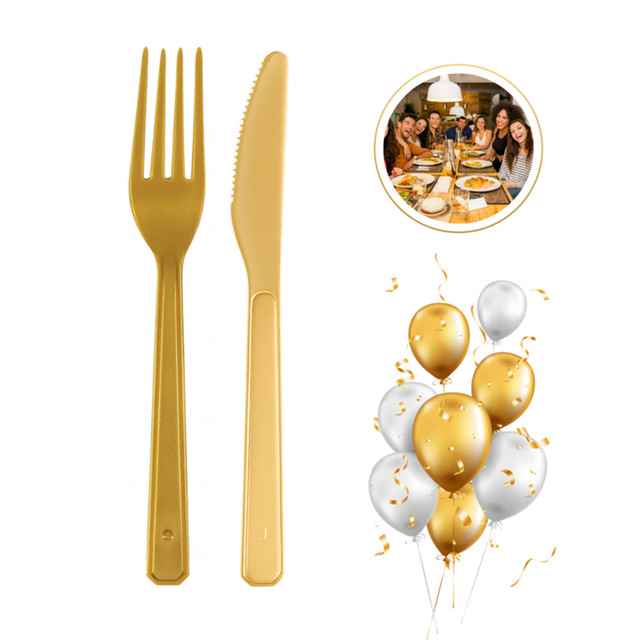 Kit Festa Churrasco 50 Garfos 50 Facas Premium Dourado Resistente