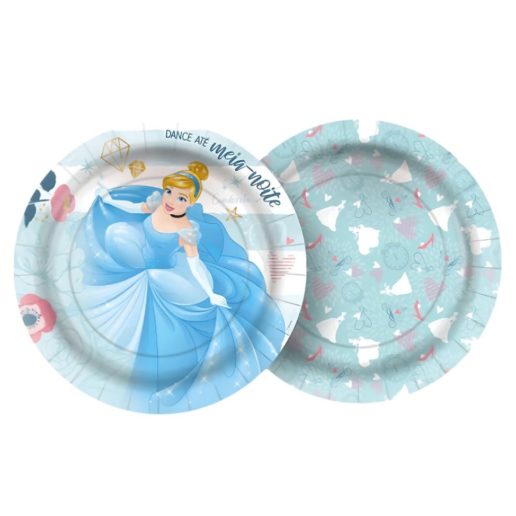 Kit Festa CINDERELA CLASSICA 16 Pratos + 16 Copos Descartável 180 Ml Papel - REGINA