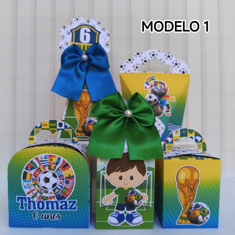 Kit Festa Copa do Mundo Brasil - Futebol - PEGUE E MONTE - Caixinhas Personalizadas para Aniversário