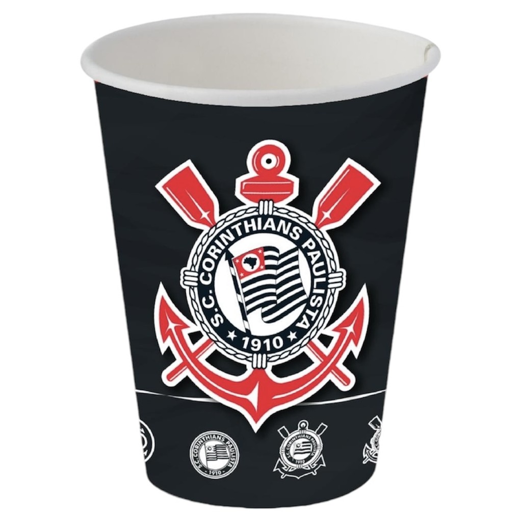 KIT FESTA ; CORINTHIANS 8 COPO PAPEL 200ML DE PAPEL 8 PRATO DE PALE 18 CENTIMETROS PODE SER UTILIZADOS EM DECORAÇÃO DE FESTAS COMO DECORAÇÃO DA MESA E IDEAL PARA SERVIR BEBIDAS E BOLOS FESTCOLOR PRODUTO LICENCIADO!
