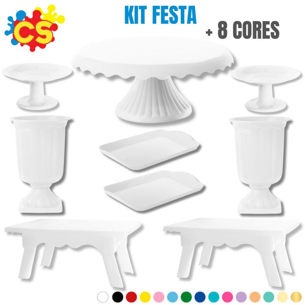 Kit Festa Decoração Boleira Cake Renda 19cm + 2 Vasos Grego + 2 Mesinha + 2 Band 20x13 + 2 Mini Cake
